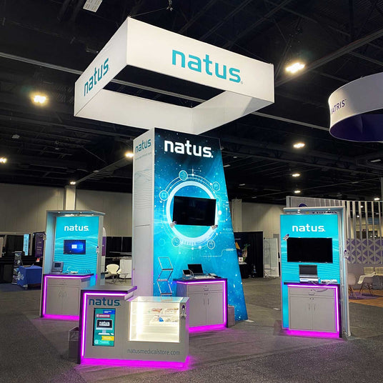 A custom trade show exhibit is designed specifically for your brand’s goals and aesthetics. Unlike off-the-shelf solutions, custom exhibits incorporate tailored features like unique layouts, additional accessories, dynamic lighting, interactive technology and other premium finishes that enhance your presence and engagement audiences on the show floor.